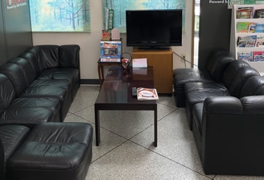 待合室でゆったりくつろいで車検をお待ち頂けます。